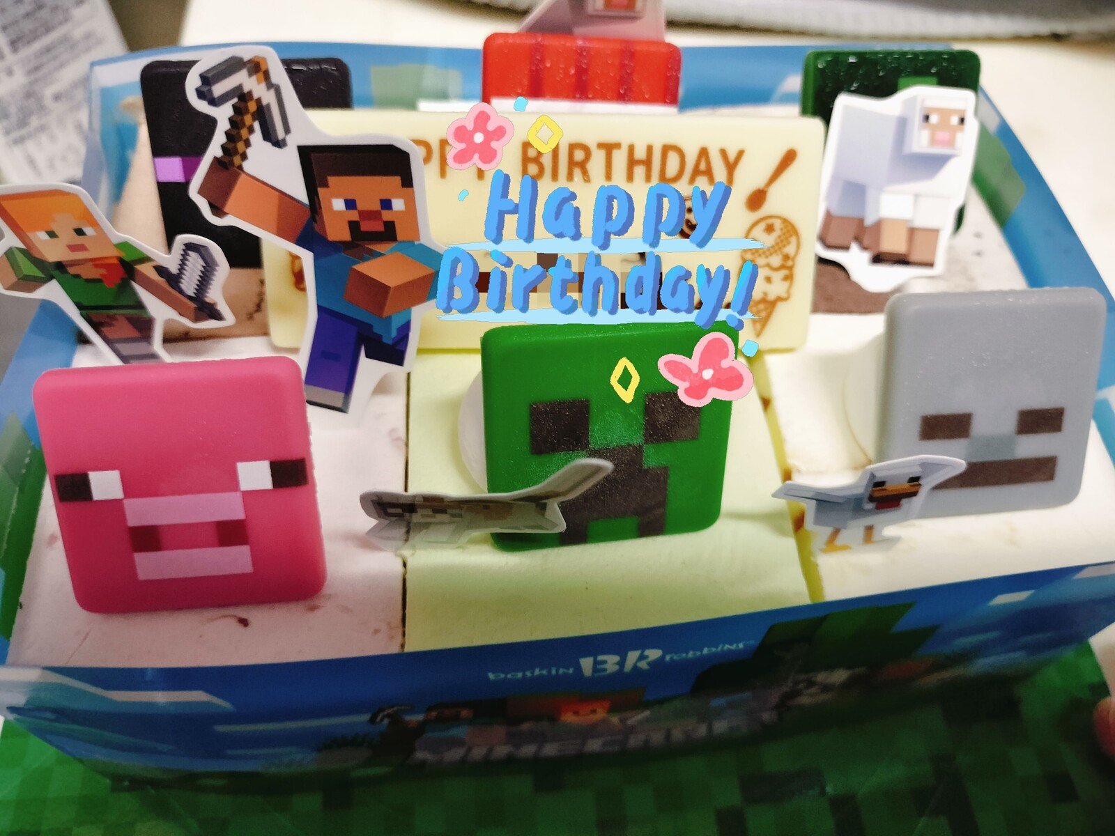 ケーキは恒例のお父さん手作り…にして欲しかったのですが、ちょうど31でマイクラアイスケーキが販売中だったので当然こちらに。