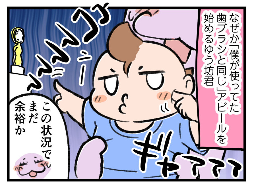 1歳半健診のときに歯医者で泣かされた割に余裕のゆう坊。