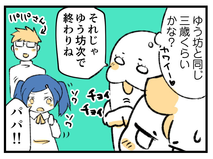 こっち側ではなく終始あちらのパパさんに言ってるのがカワイイポイント。