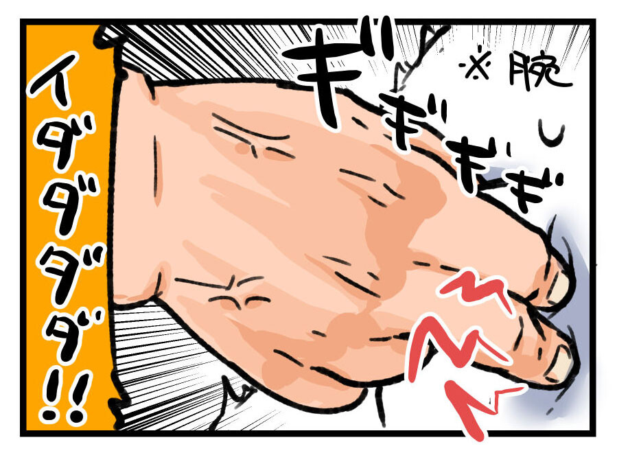 肘なら痛くないのに、ちょうど痛い層のお肉を的確にちぎろうとするんですよ、彼…。