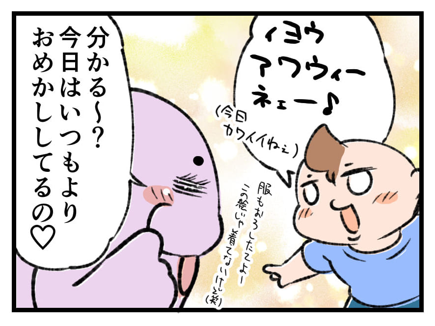 漫画ではアザラシなので服着てませんが、新しい服にしっかり気付いたゆう坊君。