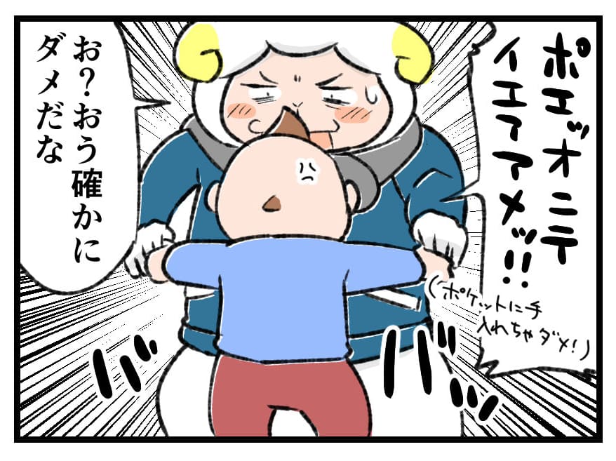 ポケットに手入れたまま歩くと危ないので幼稚園でこう教えてるようです😂