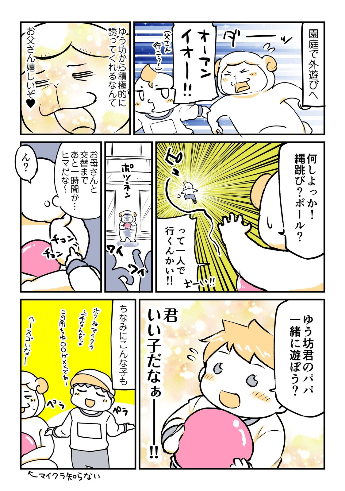 ゆう坊君は父親には目もくれず、園庭を走り回ってました😅