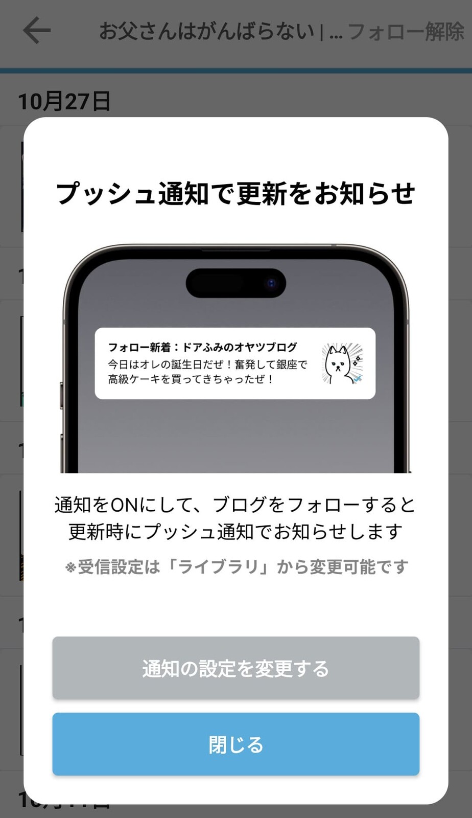 通知ONにしてたらブログ更新時にお知らせするはず。