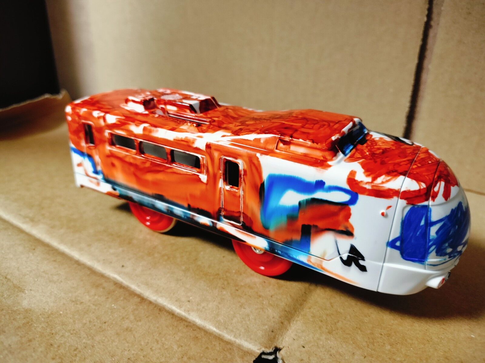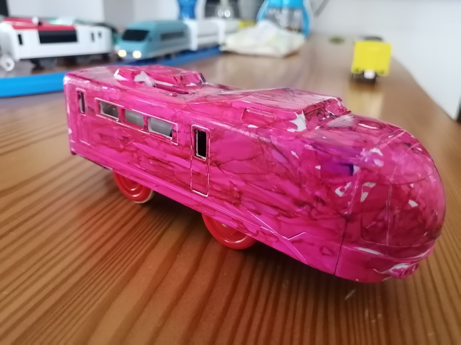 有料イベントに未着色プラレールに好きな色を塗れるというのがありまして、