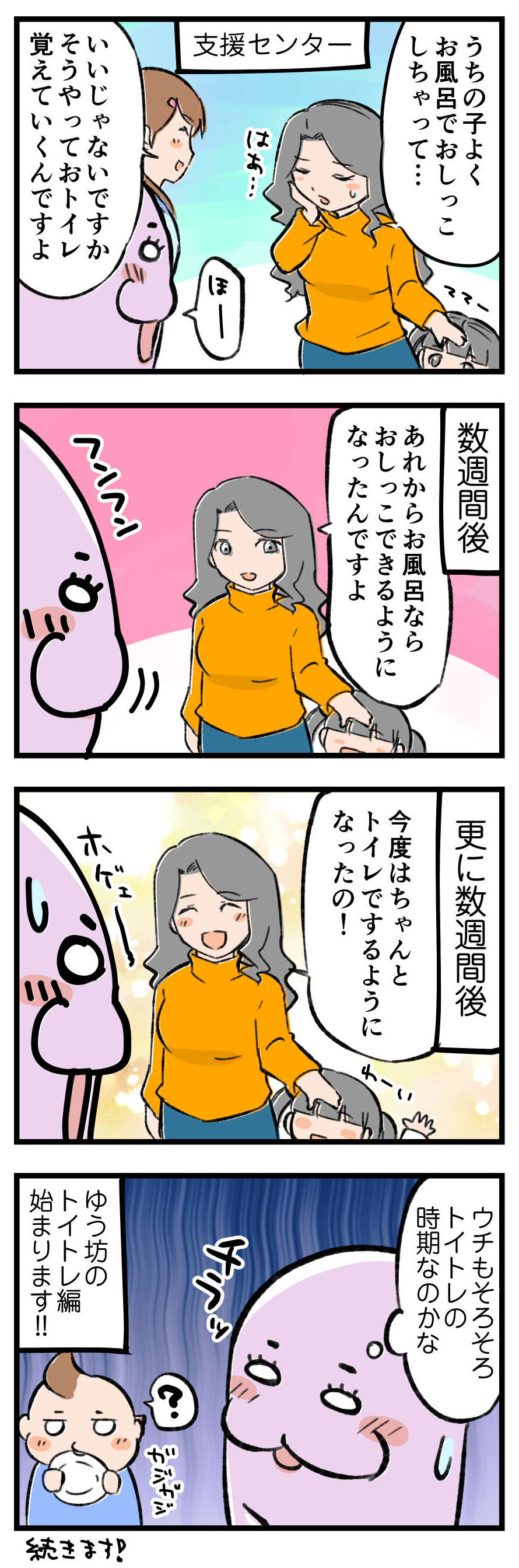 前回、前々回とゆう坊とトイレの話を描いたら嫁さんに