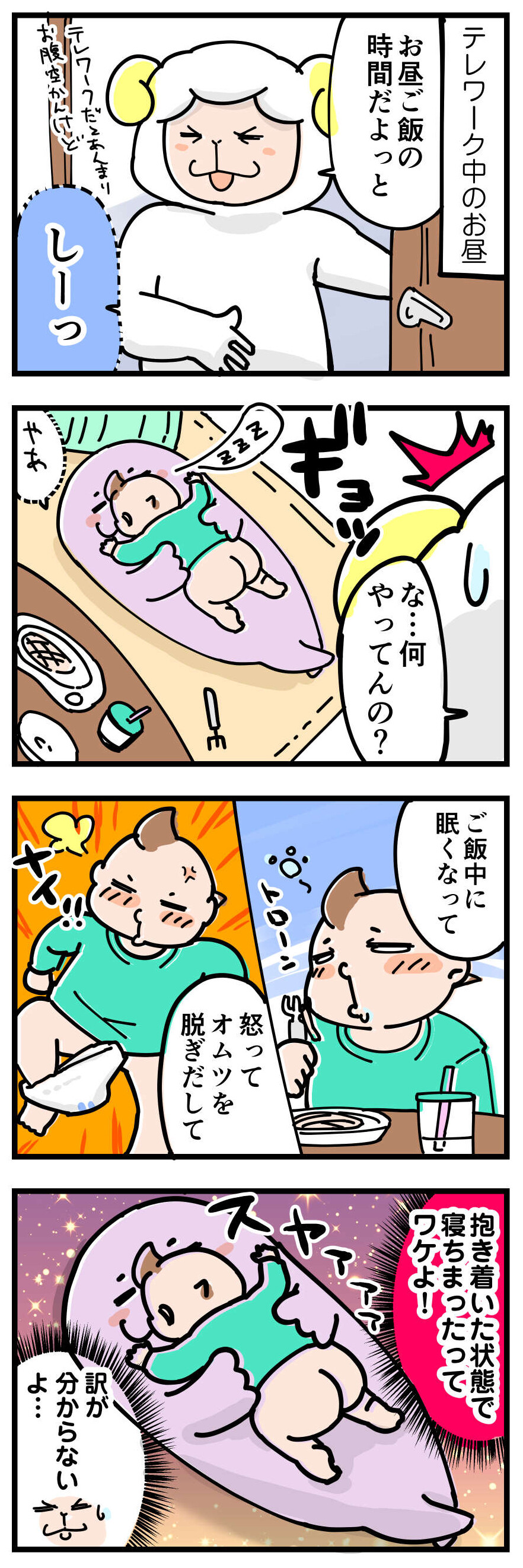 大きな音立てると起きそうだったのでお父さんは外に食べに行きました…💦
