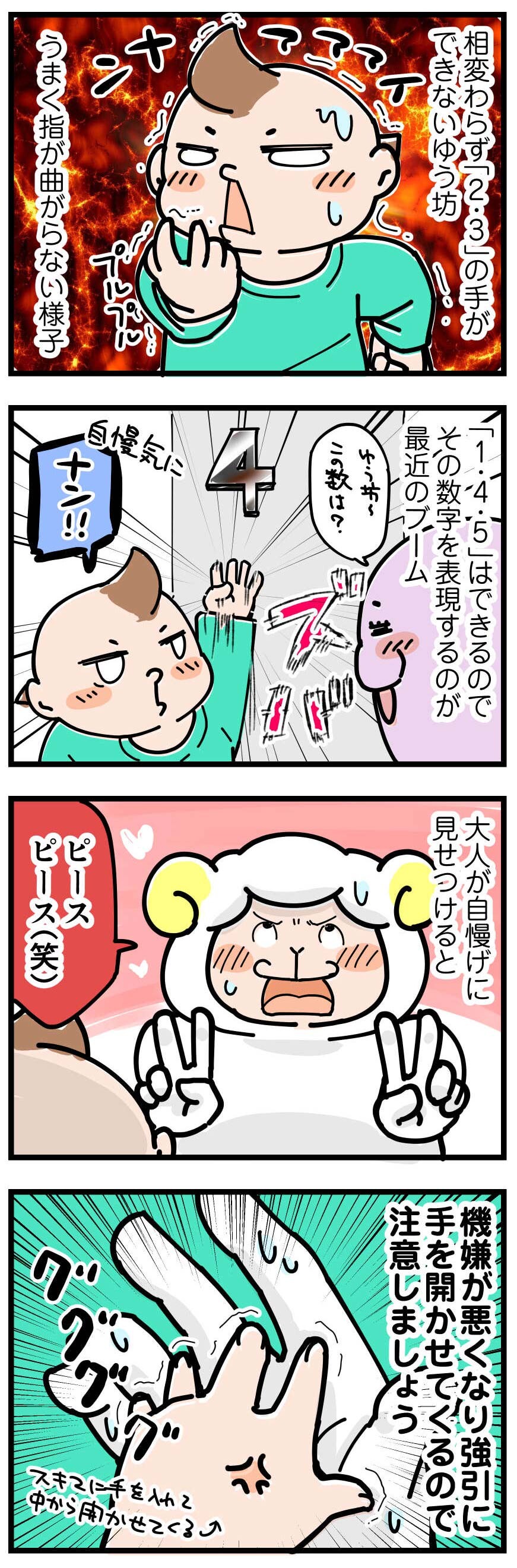 彼の目の前で見せつけるようにピースするとこんな感じで指を開かせられます(笑)