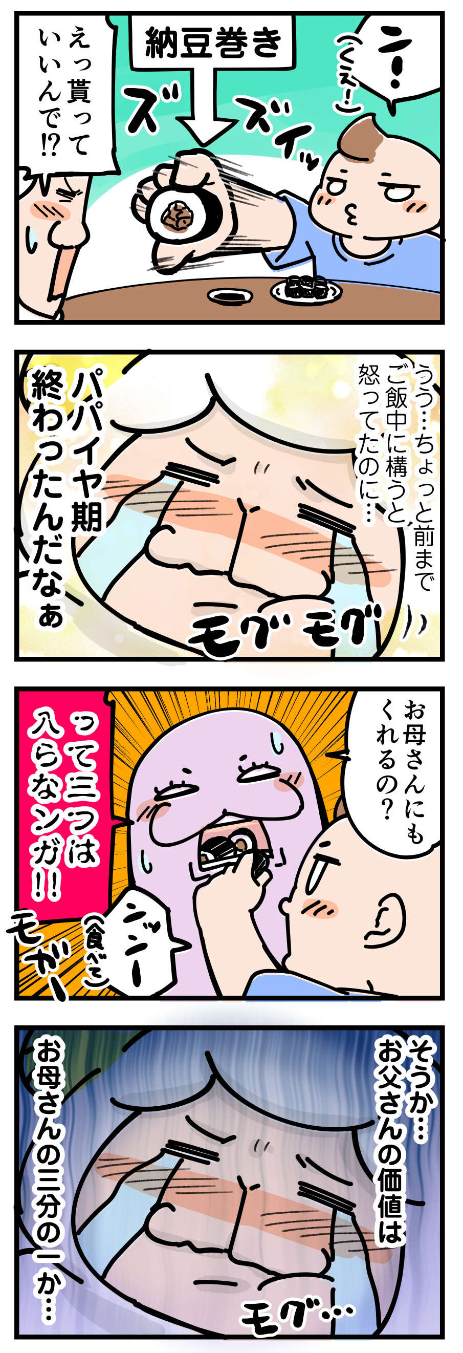 扱いはまだお母さんより下ですがお父さんは嬉しい。