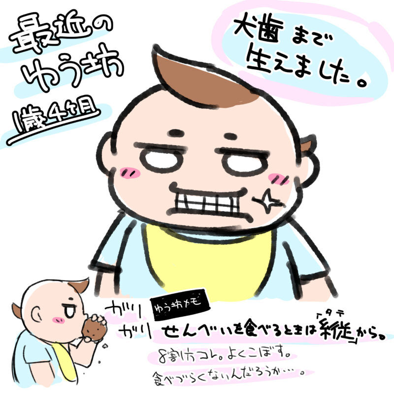 一般的に歯の生える順番は「前歯→前の臼歯→犬歯→奥の臼歯」みたいですが、ゆう坊は